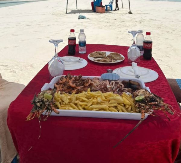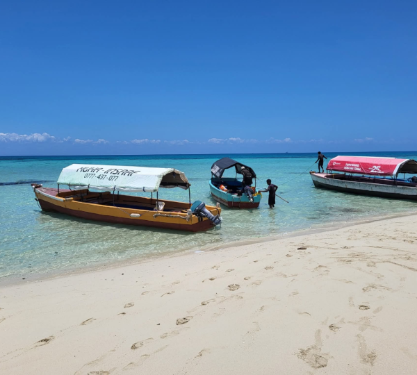 Once you arrive, step onto powdery white sands and shallow, crystal-clear waters—a perfect setting for sunbathing, swimming, and capturing postcard-perfect photos. Enjoy a delicious picnic lunch right on the sandbank, featuring fresh local seafood, tropical fruits, and refreshing soft drinks or juices. There’s nothing quite like savoring seafood with your toes in the sand!